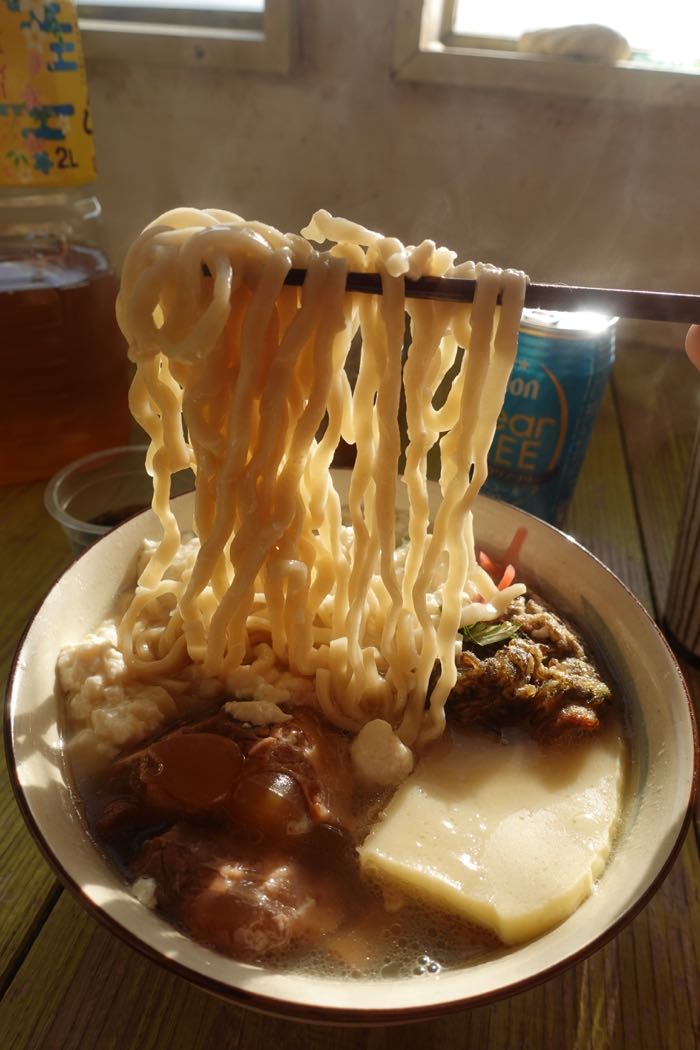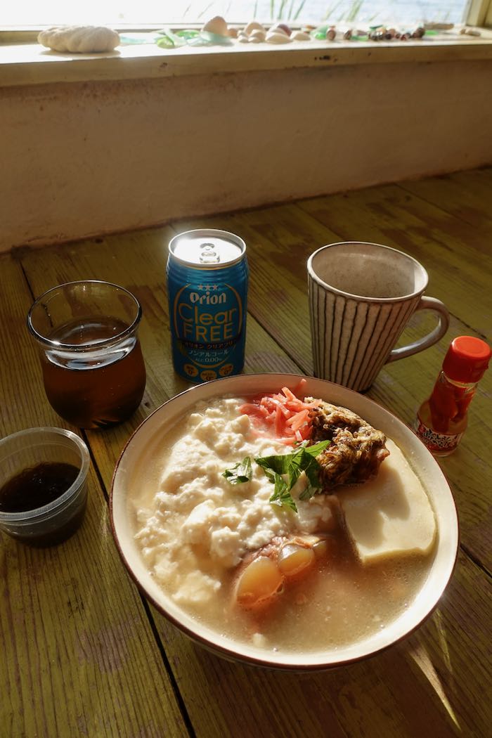 朝日を浴びながら、ゆし豆腐そばを作りました。
