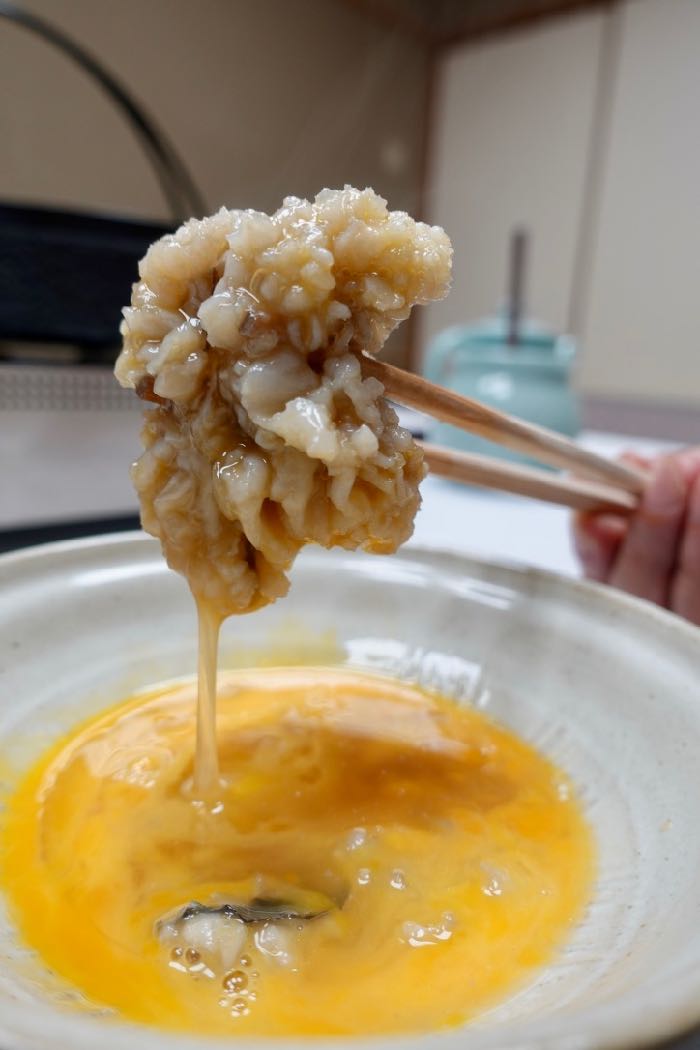 たっぷり生卵に入れて・・・この世のものとは思えないほどの味。