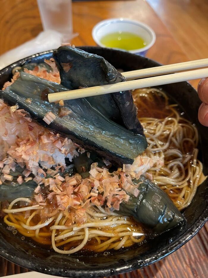 ラーメンどんぶりより大きなの器にぎっしり入った蕎麦。