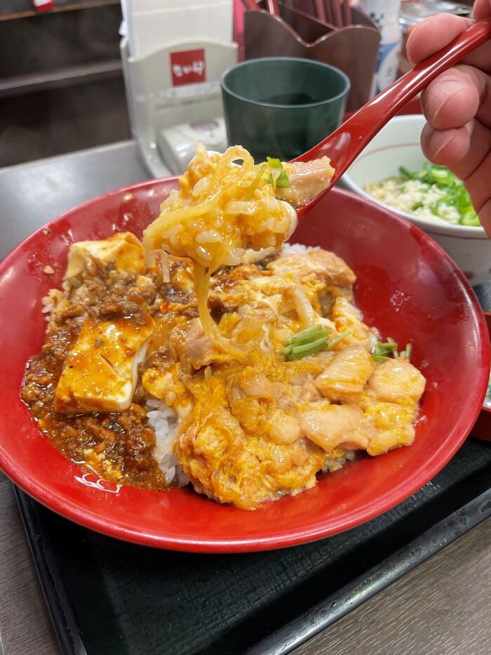 麻婆豆腐と親子丼とうどんを同時に食べたいなぁって人にオススメだと思いました。