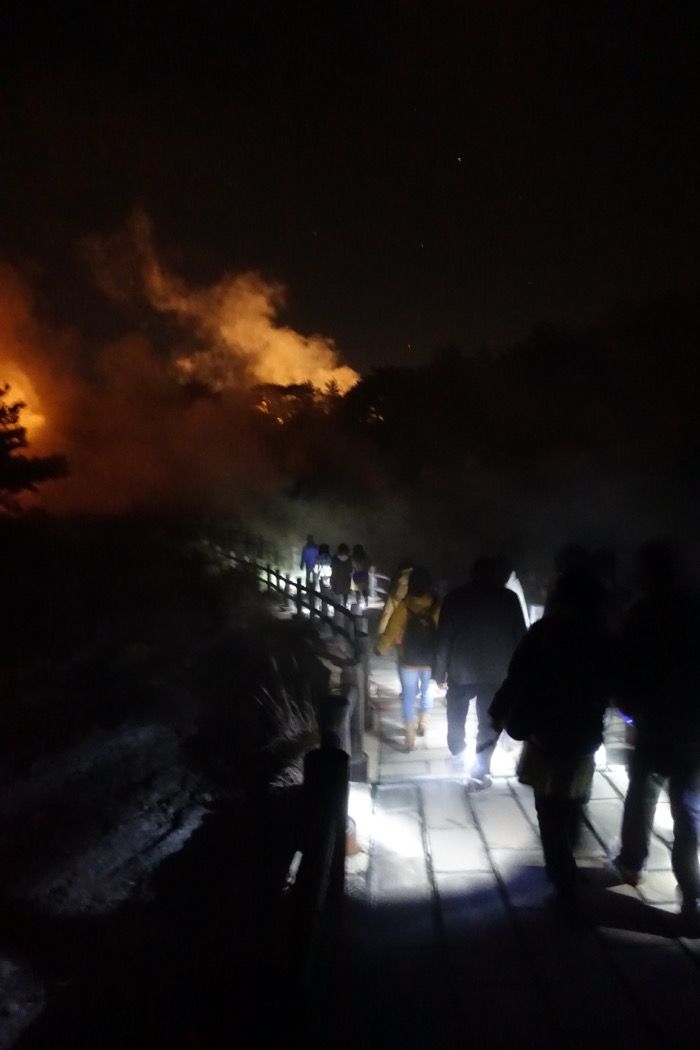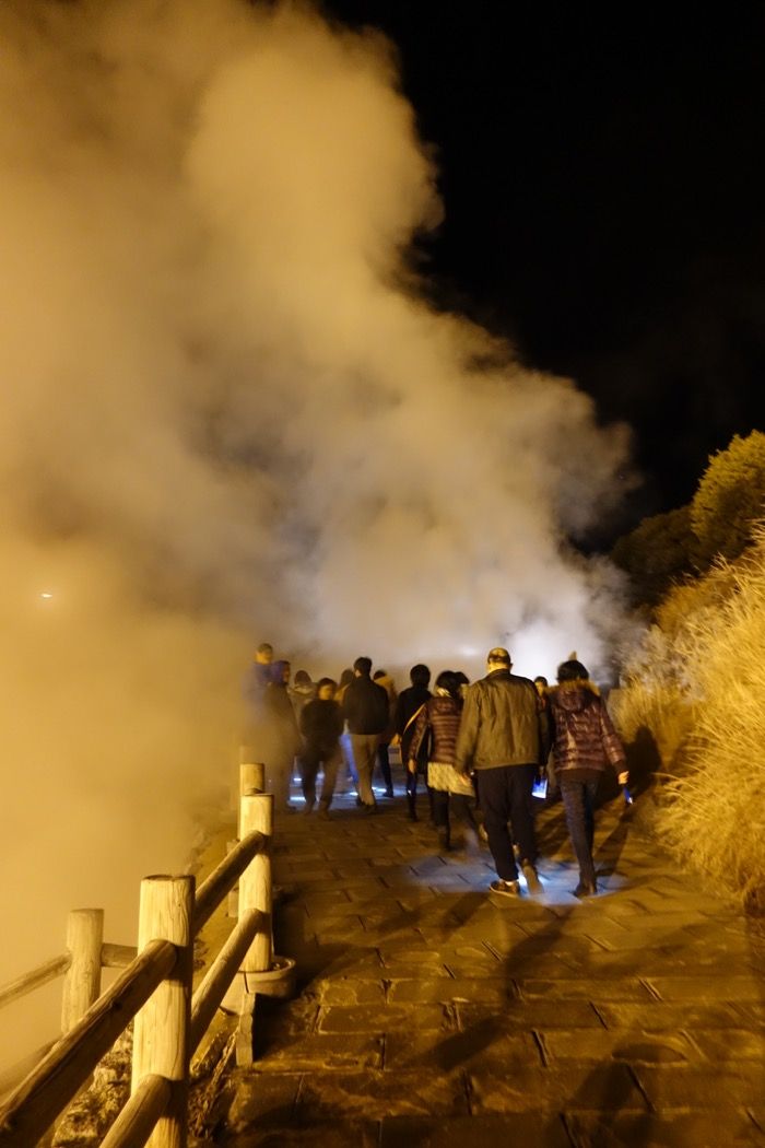 昼間見た雲仙地獄ですがこの時間ならではの楽しみ方がありました。