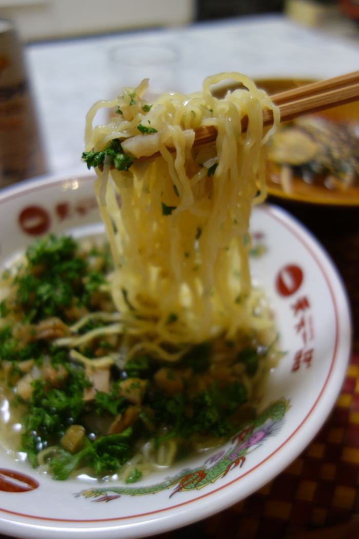 パセリとザーサイを一緒にたたき、ウェイパーと塩胡椒だけのプースーで作ったラーメンが激旨です。