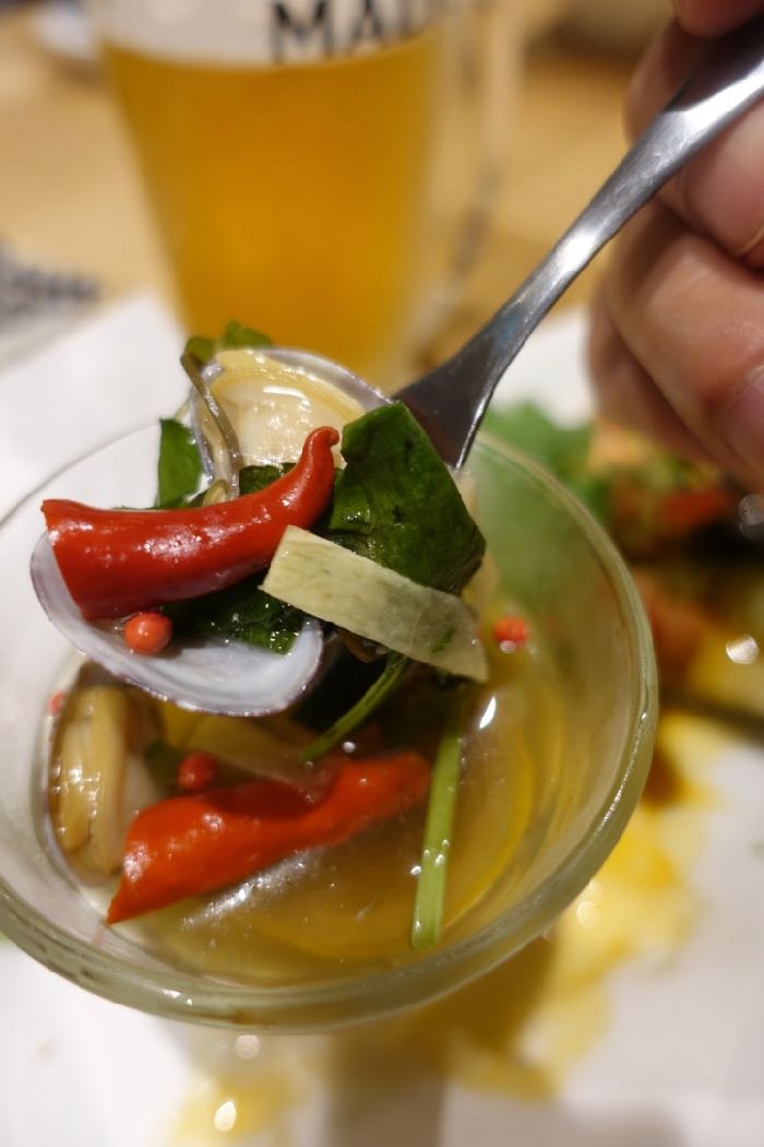 マーラーピータンとあさりのビール漬け。
