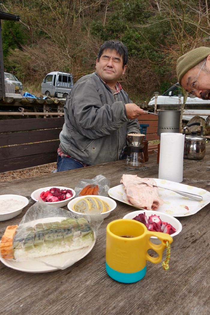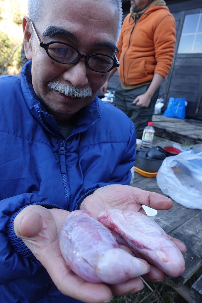 なんと前日みんなでイノシシ一頭解体してたんですね。
